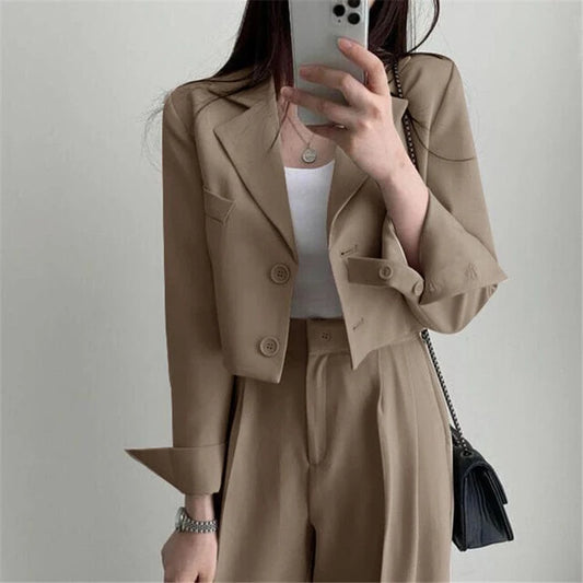 Temperament Cropped Blazer for Women Korean Fashion Office Long Sleeve Suit Coat Woman 2024 Singl...